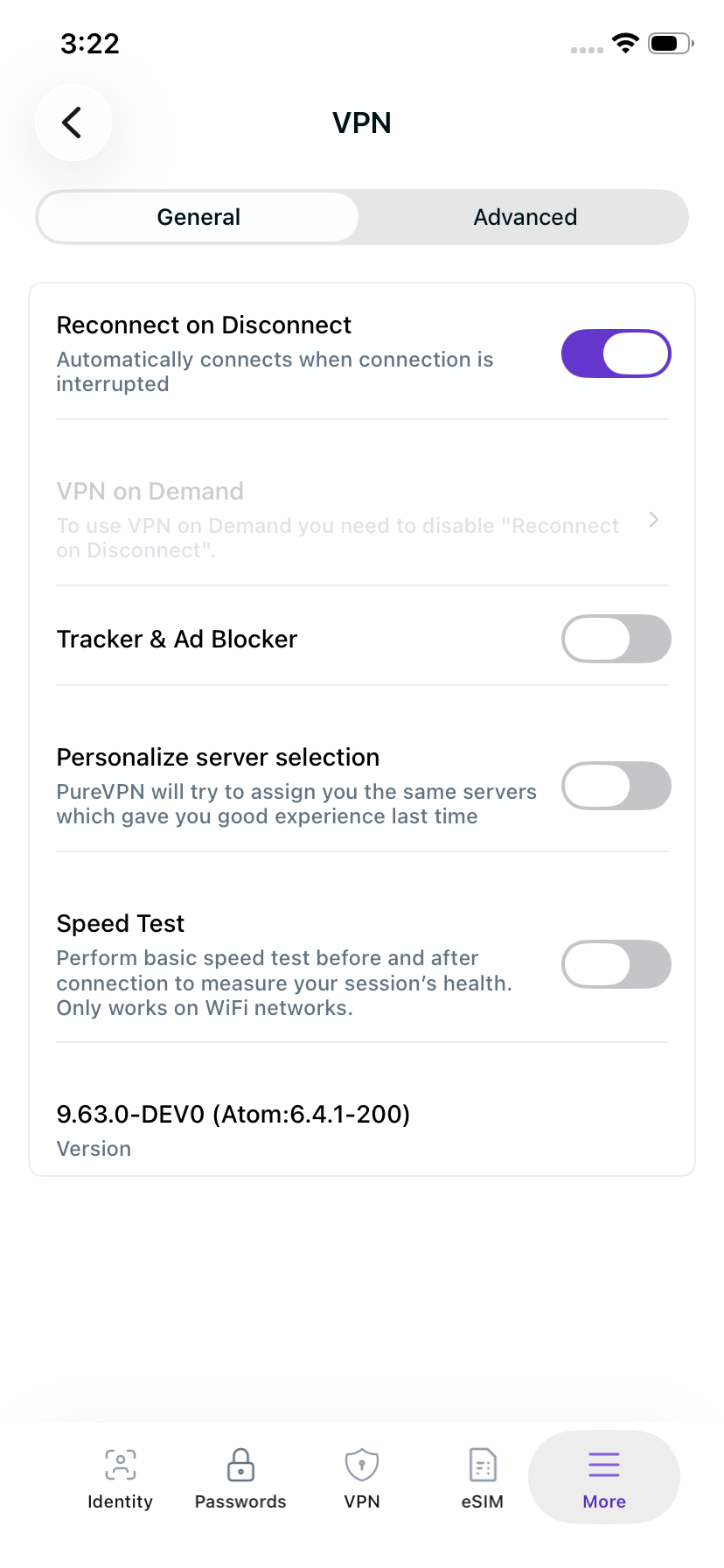 - In the general settings tab, you will be able to see Reconnect on Disconnect option.