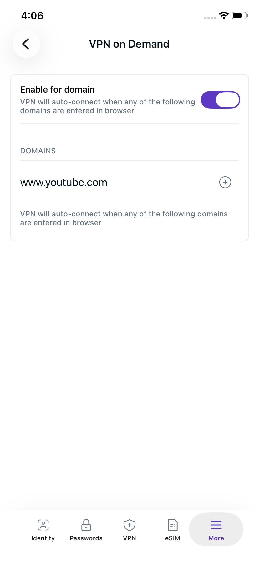 - Type the domain you wish to add. (In this article we have used www.youtube.com as an example).